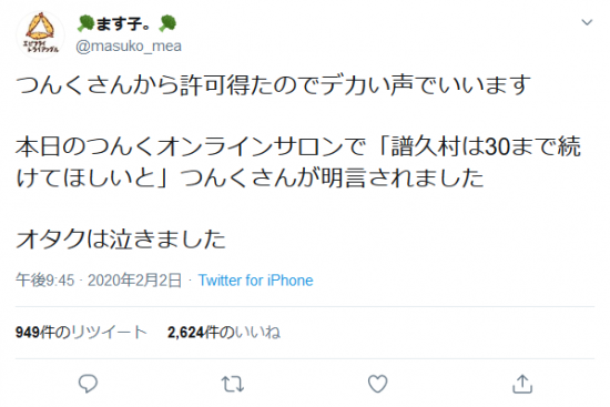 本日のつんくオンラインサロンで「譜久村は30まで続けてほしいと」つんくさんが明言されました