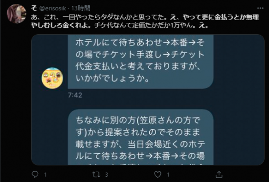 チケ流で売ると足がつくからtwitter取引に切り替えたんだな